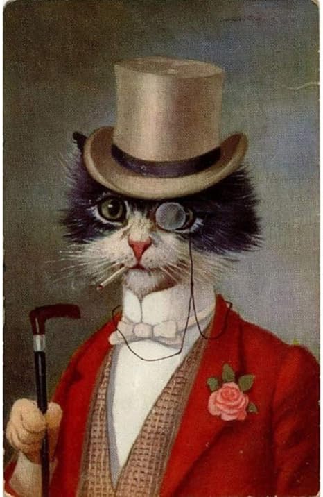 Zwarte en witte elegante hond kat wolf vos muur kunst poster en print dier dragen hoed veren canvas schilderij huis decor / 60X90cm K: Amazon.nl